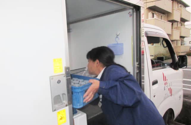 今日配達する牛乳やヨーグルトを自分の車に積みこみます。