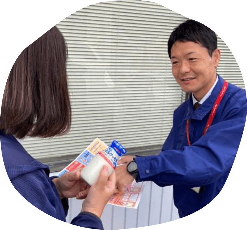 昔からのお客様が多いので、とてもフレンドリーに接して下さいます。お客様から元気をもらったり、こちらからも与えることができるので楽しくやりがいをもって仕事ができます。私が配達している牛乳やヨーグルトを毎日飲むことで健康診断の結果が良くなったよ!という声を頂くととても嬉しいです。